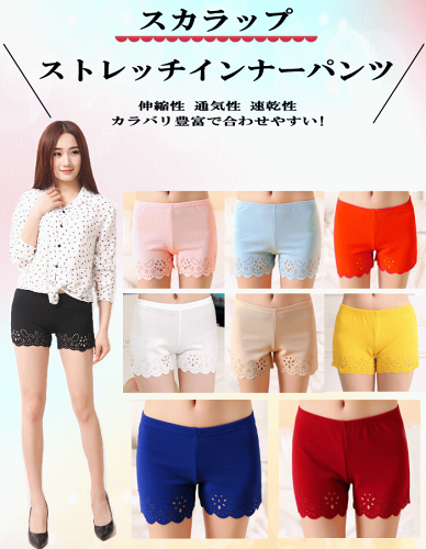 あす楽・即日発送が可能! (※条件つき) [黒][白][赤][オレンジ][青][水色][ピンク][黄] [フリーサイズ][Mサイズ]商品説明 透け防止や見せパン、ルームショートパンツなどに最適なストレッチパンツ。