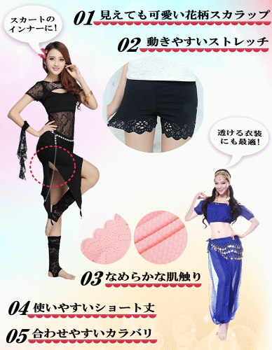 ショートパンツ 透け防止 見せパン フリル ホットパンツ インナーパンツ ショート丈 3分丈 ダンス パンツ スカラップ レース 下着 ペチコート インナーショーツ ベリーダンス ヨガ フィットネス レッスン着 レッスンウェア ヒップホップ ヨガウェア ストレッチ cr398-r zb